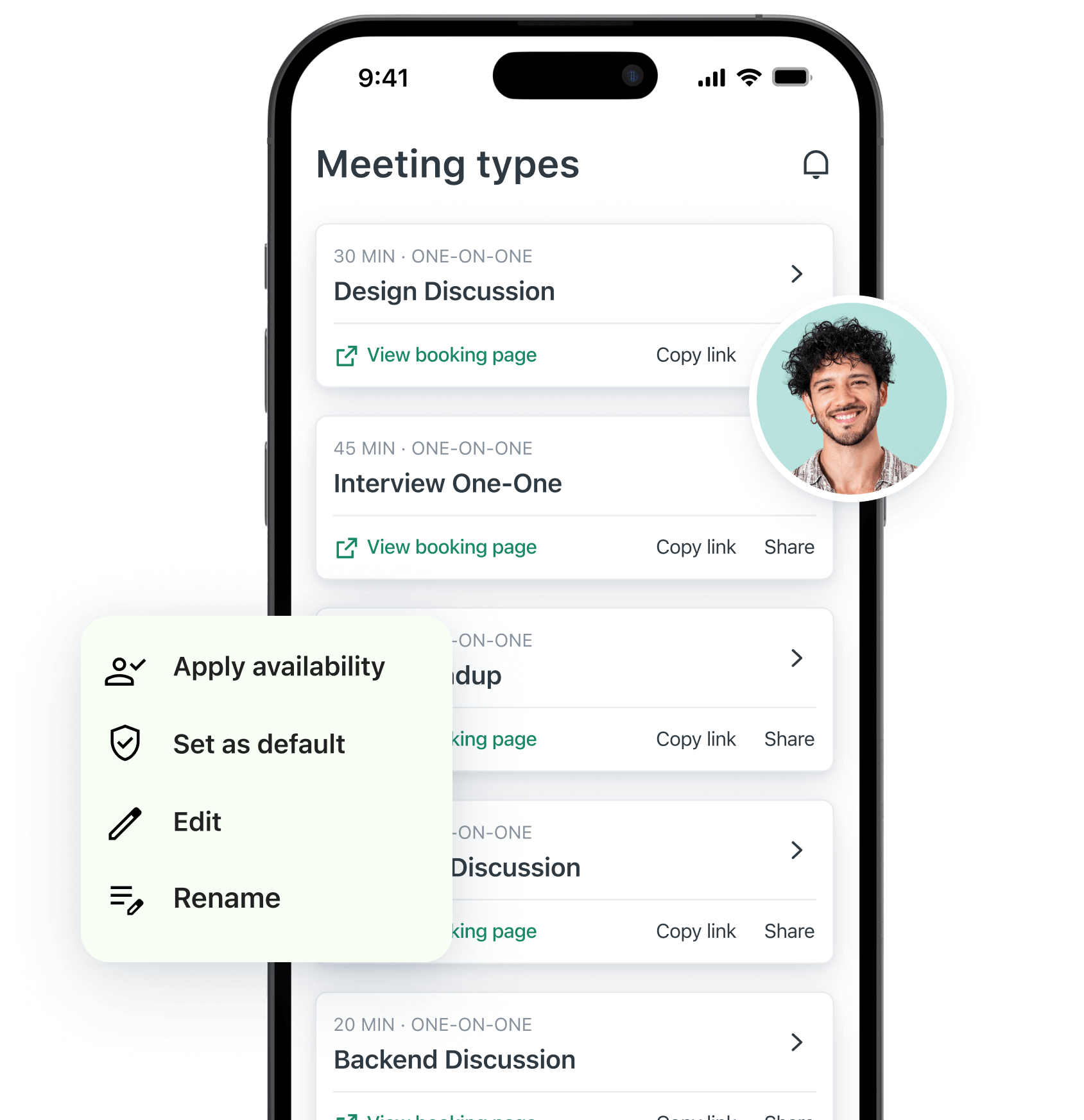 Set your available time slots, block off busy hours, and make sure you're never double-booked, all while on the go. Need to make changes? You can easily cancel or reschedule meetings directly from the mobile app.